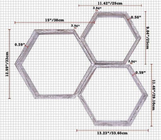 ZESTAW 3 SZT RUSTYKALNA PÓŁKA SZEŚCIOKĄTNA ŚCIENNA