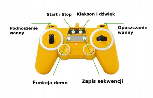 - Podnoszenie i opuszczanie wanny z ładunkiem z pilota