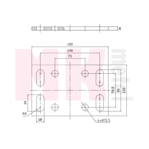 - profil jezdny/szyna: 80 x 80 x 5 mm