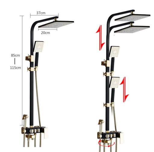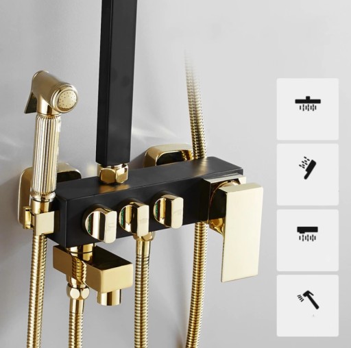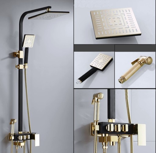 Luksusowy zestaw prysznicowy 8.8'' - 22 cm z wylewką w kolorze CZARNY MAT ZE ZŁOTYMI AKCENTAMI