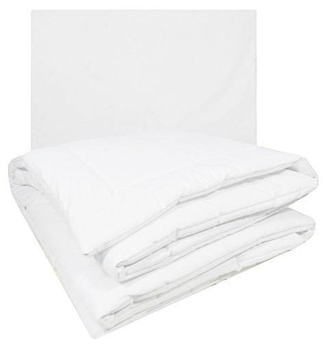 Kołdra i poduszka wykonana jest z tkaniny antyalergicznej, wypełnieniem jest ovata silikonowa wysokosprężysta antyalergiczna .