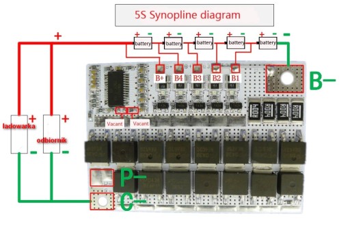 - Ładowarka - moduł ochrony baterii 100A 5S 18,5 - 21V BMS/PMS 18650