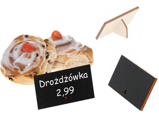 W kilka sekund za pomocą kredy można wpisać nową informacje. Dzięki tabliczkom w nietypowy sposób można wyeksponować ceny towarów. Zmywalna wilgotną gąbką, ściereczką.