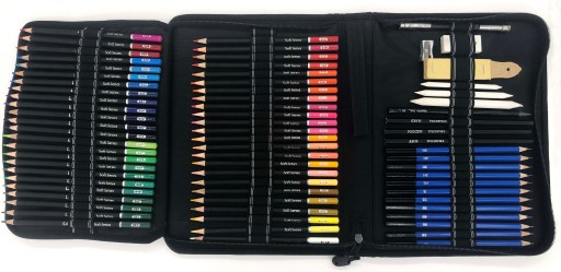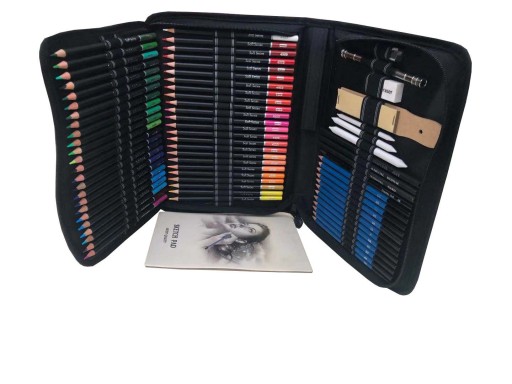 Zestaw wysokiej jakości akcesoriów do rysowania, szkicowania i kolorowania. Z powodzeniem może być wykorzystywany przez profesjonalistów jak również dla początkujących rysowników.