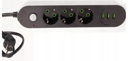 Niezawodna listwa zasilająca dzięki której możemy mieć podpiętych jednocześnie 6 urządzeń. Trzy urządzenia wpinamy standardowymi wtyczkami prądowymi, dodatkowe trzy do portów USB, które mają automatyczne dopasowanie natężenia prądu do podłączonego urządzenia max do 3.4A.