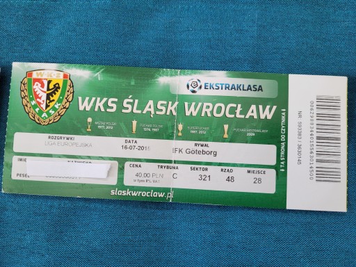 Билет Слёнск Вроцлав - IFK Goeteborg