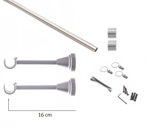 Kupując produkt otrzymasz gotowy do zamontowania karnisz metalowy pojedynczy wraz z pełnym wyposażeniem o długości 250 cm