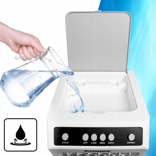 - Dzięki dużemu zbiornikowi na wodę możesz cieszyć się chłodnym i nawilżonym powietrzem przez wiele godzin bez przerwy.