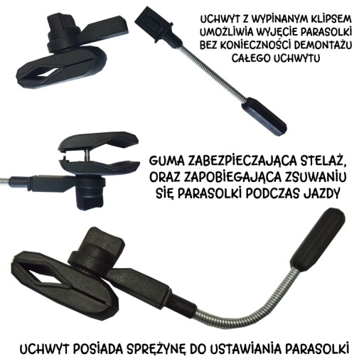- Odpinany uchwyt pozwala na szybkie wypięcie parasola
