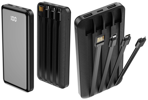 Power bank 10000 mAh z 4 wbudowanymi kablami!