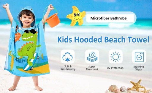 ПОНЧО ПЛЯЖНОЕ ПОЛОТЕНЦЕ С КАПЮШОНОМ ДЛЯ ДЕТЕЙ