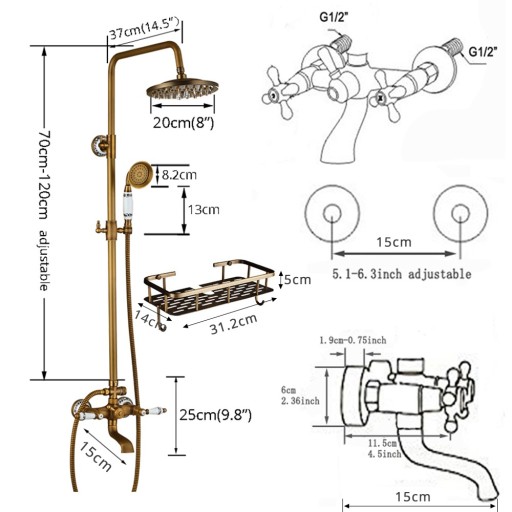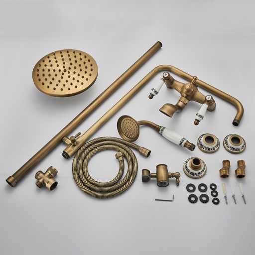Stylowy zestaw prysznicowy Old Retro w kolorze pięknego mosiądzu