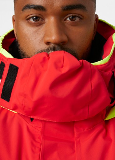 Możliwość regulacji kaptura, mankietów i dolnej krawędzi pozwala dopasować kurtkę do sylwetki i własnych preferencji. Dodatkowe atuty tego modelu to między innymi kaptur z materiału o podwyższonej widzialności, wyściełany polarem kołnierz, elementy odblaskowe zgodne z konwencją SOLAS, kieszenie cargo oraz pętelka do zawieszania.