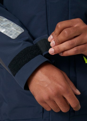 Możliwość regulacji kaptura, mankietów i dolnej krawędzi pozwala dopasować kurtkę do sylwetki i własnych preferencji. Dodatkowe atuty tego modelu to między innymi kaptur z materiału o podwyższonej widzialności, wyściełany polarem kołnierz, elementy odblaskowe zgodne z konwencją SOLAS, kieszenie cargo oraz pętelka do zawieszania.