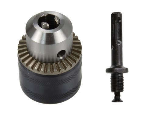 Głowica wiertarska przeznaczona do stosowania z małymi i dużymi wiertarkami ręcznymi w zestawie z przejściem SDS do wiertarki 1/2-20UNF, służącym do montażu uchwytu wiertarskiego w urządzeniach z uchwytem SDS plus.