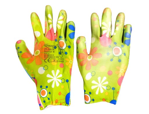 Rękawice do ogrodu dla Pań i dzieci , ochronne poliestrowe, powlekane w części chwytnej poliuretanem. Dzięki kolorystyce umilają prace ogrodowe oraz porządki przydomowe.