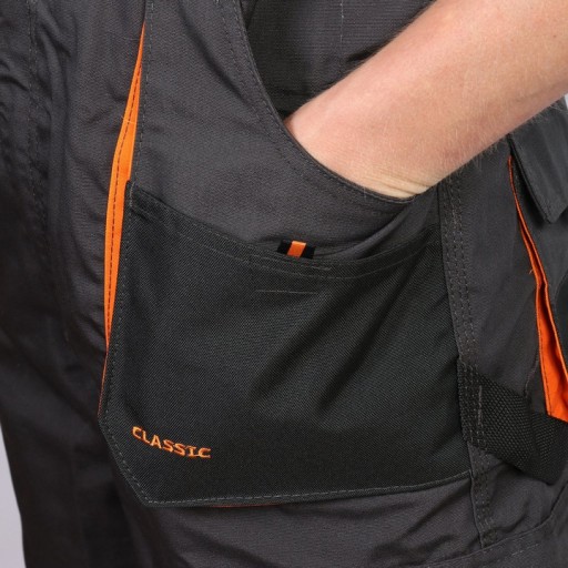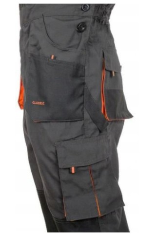 Spodnie ogrodniczki classic – atrakcyjne wzornictwo i doskonała funkcjonalność. Wykonane z bardzo wytrzymałej specjalistycznej tkaniny - płótno (65% poliestru i 35% bawełny) o bardzo wysokiej gramaturze 270+/-10 gram/m2.