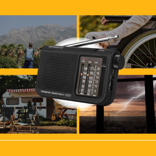 Retekess V117 Małe radio na baterie FM AM SW Przenośne radio Odbiornik światowy Radio Bateria Gniazdo słuchawkowe Kuchnia Łazienka Walking Camping dla seniorów (czarny)