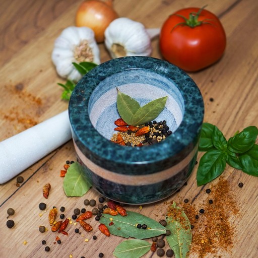 - Trwały i naturalny materiał - moździerz o średnicy 13 cm oraz tłuczek wykonane są z trwałego i szlachetnego kamienia granitowego odpornego na ścieranie.