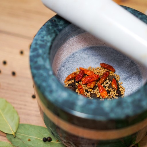 - Funkcjonalny i przydatny — matowe wnętrze moździerza w starciu z wyprofilowanym tłuczkiem pozwala na szybkie i bezproblemowe rozdrabnianie wszystkich ziół, przypraw, orzechów oraz leków.