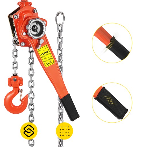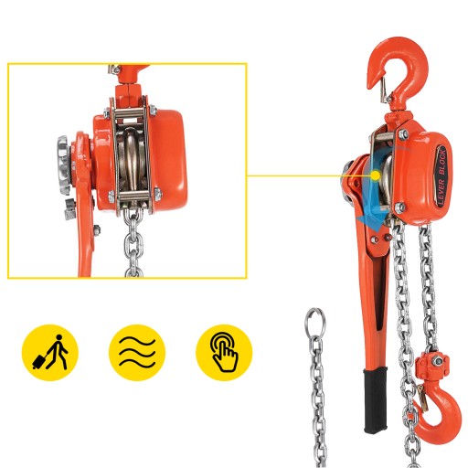 Wytrzymała konstrukcja 1,5 T: Wykonany z litej stali węglowej, która ma wyjątkową odporność na uderzenia i utlenianie, ten wciągnik łańcuchowy jest przeznaczony do długotrwałego użytkowania. Jest również łatwy do przenoszenia dzięki prostej konstrukcji i niewielkim rozmiarom. Udźwig 1,5 T.