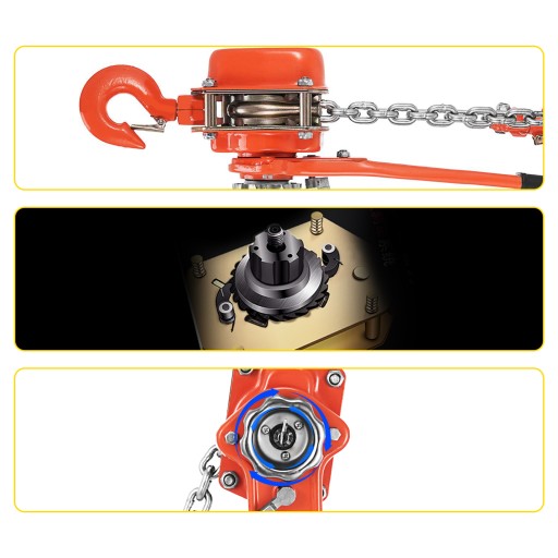 System pęknięć wciągnika łańcuchowego jest solidny, co skutecznie wspomaga przemieszczanie dużych ładunków poprzez obrót sworznia koła. Dodatkowo hamulec premium czyni go bardziej stabilnym i znacznie zapewnia bezpieczeństwo podczas pracy.