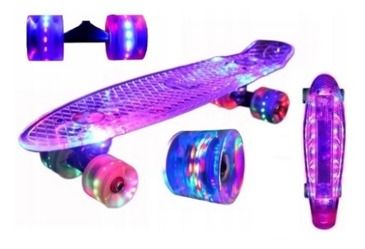 Deskorolka - fiszka LED 56cm- cała świecąca RBG + kółka LED