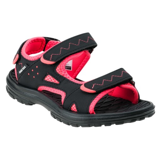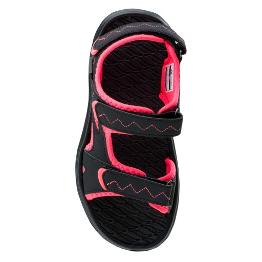 Cholewkę wykonano z lekkiego, a jednocześnie wytrzymałego tworzywa. Regulowane paski z zapięciami na rzep umożliwiają precyzyjne dopasowanie sandałów do kształtu stopy. Dzięki temu noga nie przesuwa się wewnątrz buta, a Ty zyskujesz pełną stabilność i swobodę ruchów. Siateczkowe panele w bocznej części cholewki dodatkowo poprawiają wentylację. Miękka wyściółka pasków chroni skórę przed podrażnieniami. Materiał podeszwy to elastyczna guma, która dostosowuje się do naturalnych ruchów stopy. Wypustki na powierzchni podeszwy ograniczają ślizganie się stopy w bucie. Grubo żłobiony bieżnik ma dobrą przyczepność do każdej nawierzchni. Trwały materiał podeszwy ma wysoką odporność na ścieranie, dzięki czemu sandały zachowają swoje właściwości przez kilka sezonów.