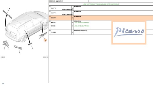 OFERUJEMY NOWY ORYGINALNY NAPIS PICASSO DO C4 PICASSO MODEL 2006-2013 NUMER OE 8665RY