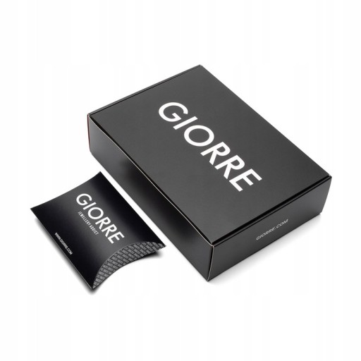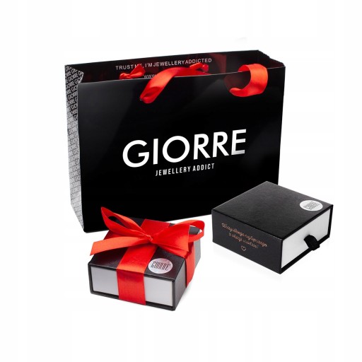 Biżuteria GIORRE jest umieszczona w eleganckim czarnym pudełeczku, które przewiązujemy czerwoną wstążką.