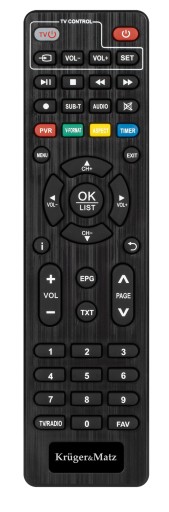 Umieszczony z tyłu telewizora tuner DVBT Kruger&Matz jest niewidoczny, ale to nie zmniejsza komfortu obsługi urządzenia. Dołączony do zestawu odbiornik IR oraz poręczny pilot z programowalnymi przyciskami sprawia, że bez problemu możesz korzystać ze wszystkich funkcji urządzenia. Co więcej odpowiednie zaprogramowanie przycisków sprawi, że jednym pilotem szybko i bez problemu będziesz mógł zarządzać funkcjami zarówno telewizora, jak i tunera.