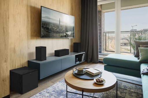 Dyskretna niskoprofilowa maskownica idealnie komponuje się z elegancką obudową subwoofera bez wpływu na dźwięk.