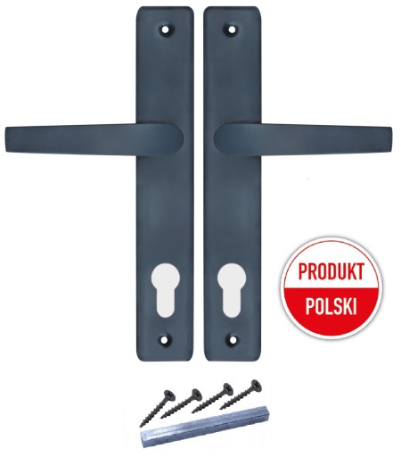- Klamko-Klamka aluminiowa ze stalowym szyldem o rozstawie 90mm w kolorze GRAFITOWYM