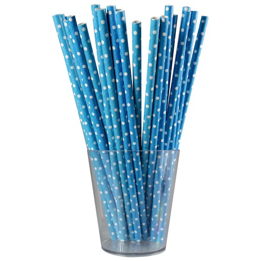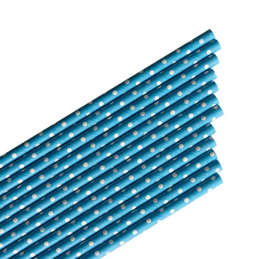 SŁOMKI PAPIEROWE NIEBIESKIE - BIAŁE KROPKI