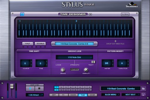 Jedną z najbardziej innowacyjnych funkcji programu jest funkcja "TIME DESIGNER" Pozwala ona dowolnie modyfikować pętle rytmiczne w sposób dotąd niemożliwy. Możemy teraz dowolnie rozkładać akcenty oraz zmieniać metrum danego przebiegu rytmicznego. Nic nie stoi na przeszkodzie by z pętli w metrum na 4/4 zrobić 3/4. Tak! - brzmi to niewiarygodnie ale ze Spectrasonics STYLUS RMX jest to już możliwe!