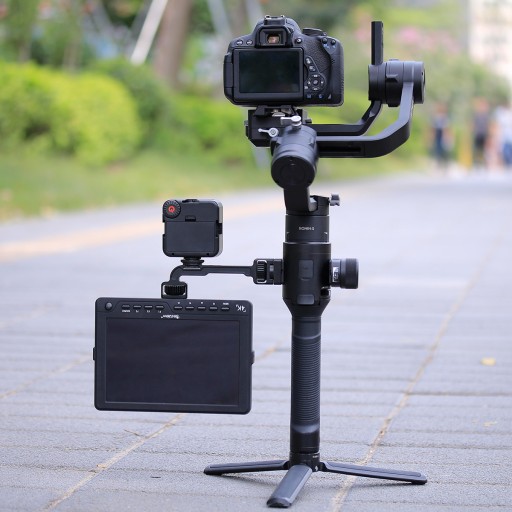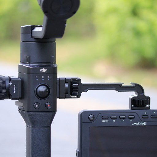 Uchwyt pozwala na zamocowanie dodatkowych akcesoriów przy gimbalu, w tym w szczególności monitora podglądowego.
