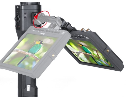 Uchwyt dedykowany jest szczególnie do montażu monitorów podglądowych. Posiada specjalną obrotową konstrukcję 360 stopni, która umożliwia idealne dopasowanie konta nachylenia monitora względem gimbala.