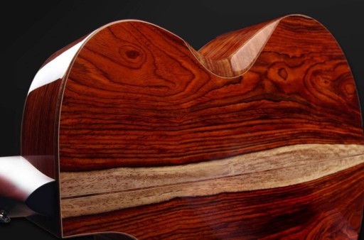 Body Kszatł korpusu: Gc Top: Lity świetk alpejski Tył i boki: Lite Cocobolo Binding Koa z białymi liniami Gryf: African mahogany Podstrunnica: Ziricote Mostek: ziricote Klucze: Gotoh 510 Silver Patina - gear ratio 1:21 Elektronika: LR BAGGS ANTHEM Wykończenie: Full-Pore High-Gloss Finish