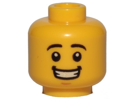 - Yellow Minifigure, Head Black Eyebrows, White Pupils, Chin Dimple, Open Mouth Smile with Teeth Pattern - Hollow Stud / główka faceta z uśmiechem