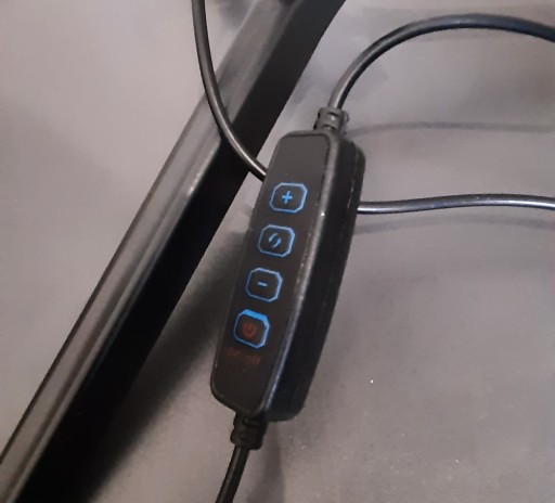 Lampa posiada dedykowany panel sterowania, osadzony na kablu zasilania z portu USB, pozwalający na włączanie, wyłączanie lampy, zmianę natężenia oświetlenia oraz temperatury barwowej. W celu ułatwienia zarządzania parametrami lampy w trudnych warunkach oświetleniowych, przyciski na pilocie zostały podświetlone. Długość kabla zasilającego to 200 cm.