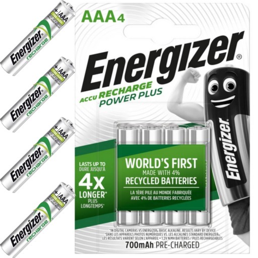 - 4x Akumulatorki Energizer POWER PLUS R3 AAA 700mAh - oryginalny blister