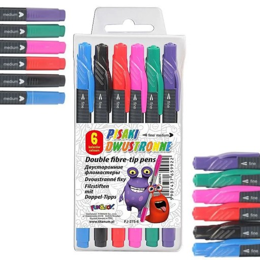 Flamastry dwustronne 6 kolorów Fun&Joy
