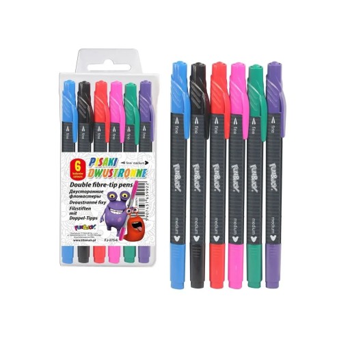 - Zestaw 6 dwustronnych pisaków charakteryzujących się bardzo wysoką jakością, którą potwierdzają intensywne, żywe i nieblaknące kolory.