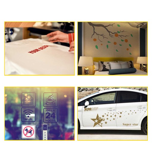 Szerokie zastosowanie: Ta maszyna może ciąć różne materiały, takie jak winyl termotransferowy, papier, papier rzemieślniczy, karton i maski malarskie. Szeroko stosowany w reklamie, dekoracji, majsterkowaniu, tworzeniu etykiet i logo.