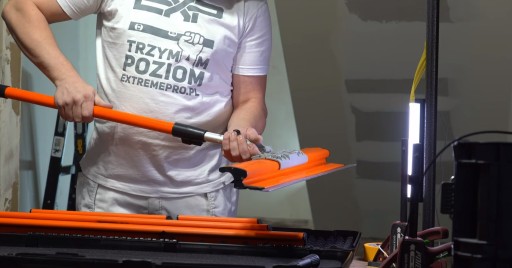 Dzięki plastikowemu korpusowi narzędzie jest lekkie, do korpusu zostały dodane wypustki, które ułatwiają trzymanie narzędzi.