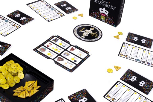 Mascarade to nowa edycja popularnej gry imprezowej, w której każdy skrywa prawdziwą twarz, a my musimy wydedukować, kto mówi prawdę, a kto blefuje. Celem gry jest zebranie żetonów monet o wartości 13 punktów. Aby je zgromadzić, będziemy korzystali ze zdolności kart postaci: niekoniecznie tych, które mamy przed sobą. Pamiętajmy jednak, że każdy blef niesie za sobą ryzyko zdemaskowania, a tym samym utraty cennych monet!