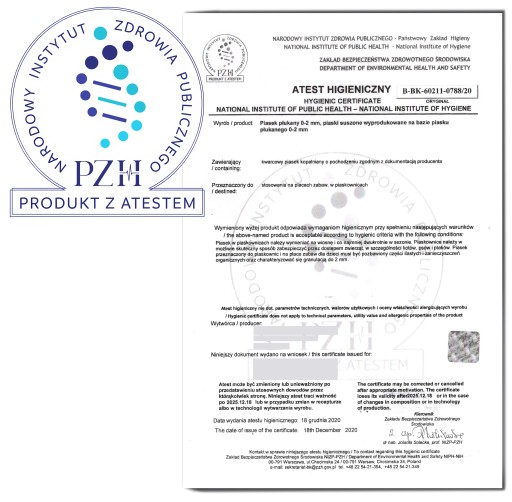 Piasek posiada atest. Jest w pełni bezpieczny dla najmłodszych. Zapewnia im wiele godzin zabawy.