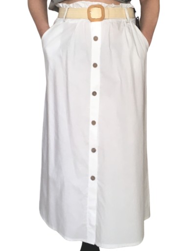 Bardzo fajna spódnica z bawełny , z paskiem gumowanym w komplecie , spódnica ma jedynie rozpinane guziki z przodu, w pasie na gumke