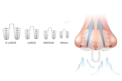 Zestaw składa się z 4 wkładek w różnych rozmiarach umożliwiać dzięki temu idealne dopasowanie do nosa, nie przeszkadzają podczas snu lub uprawiania sportu.