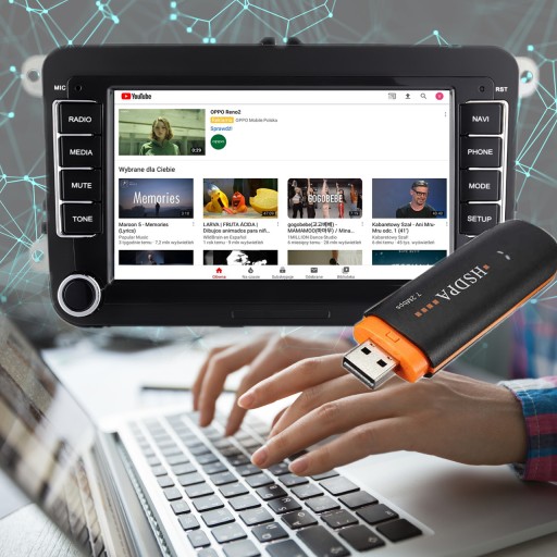 Do radia można podłączyć modem USB bądź udostępniać Internet z telefonu.
